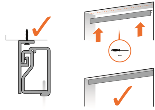 Befestigen Sie das h-Profil so, dass die Kerbe nach oben zeigt. Der Schenkel des "h" zeigt nach unten. Achten Sie darauf, dass Sie 4 cm Platz haben, den Sie für die gesamte Montage des H-Profils mit breitem Streifen benötigen. Sonst können Sie den Vorhang nicht richtig einhängen.